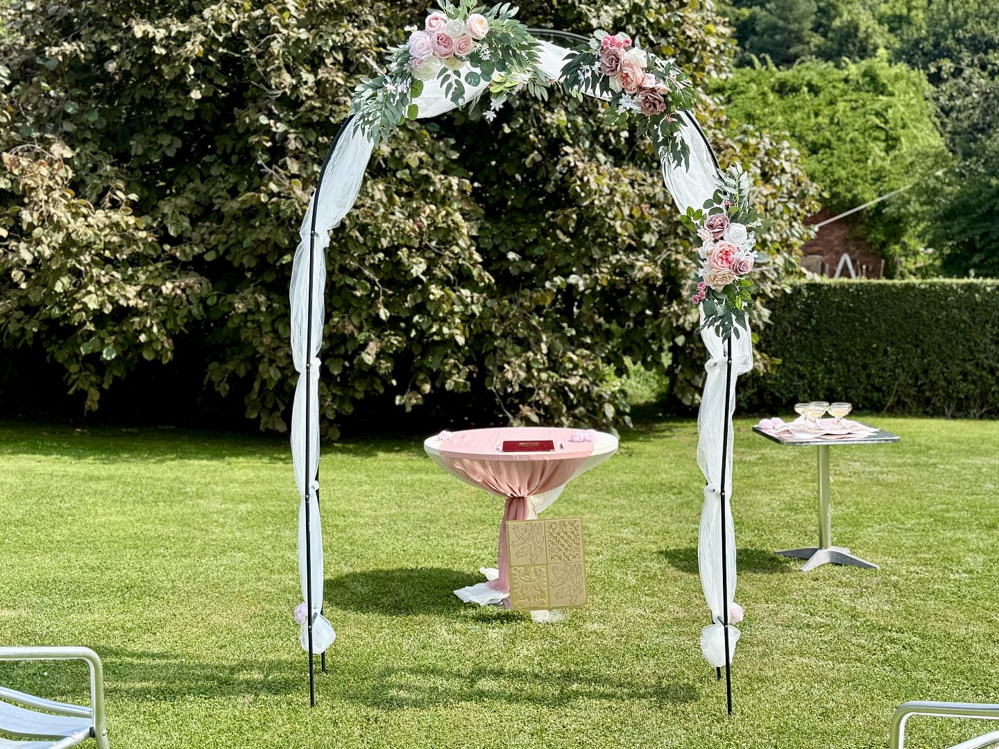 Romantická svatba pod širým nebem přímo v zahradě našeho penzionu – obřad pod slavobránou…